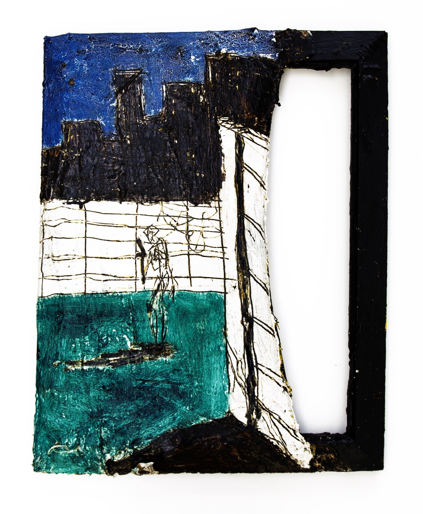 OIL, ENAMEL AND BITUMEN ON CANVAS AND WOOD, 58 x 45.5 cm