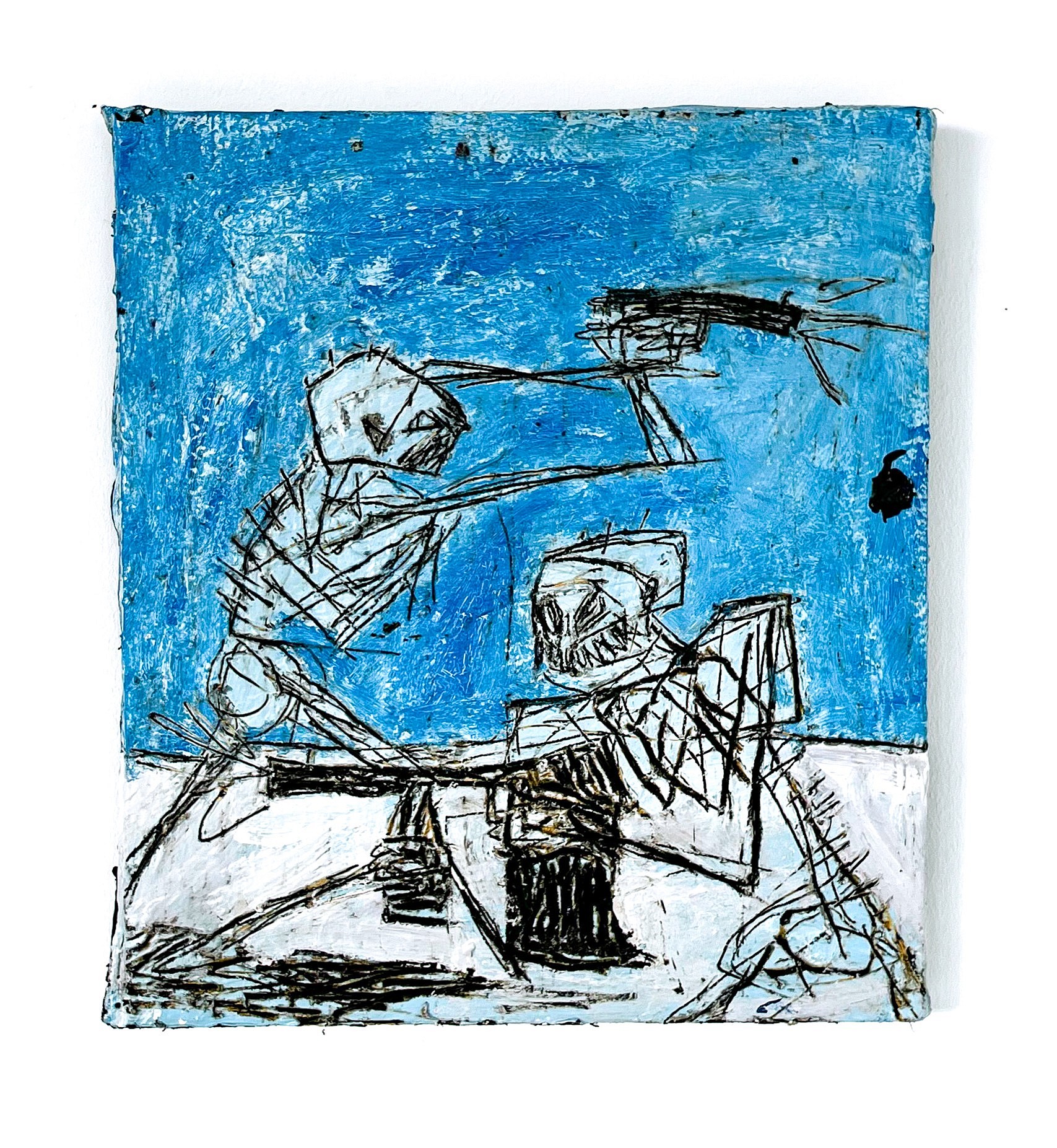 OIL, ENAMEL AND BITUMEN ON CANVAS STRETCHED OVER BOARD, 46.5 x 52 cm
